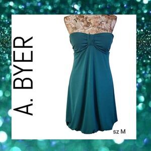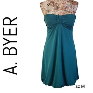 A. Byer Teal Blue Green Strapless Babydoll Waist Balloon Hem Cocktail Short Sexy Dress sz M in EXCELLENT like NEW Condition! Only worn once. Perfect for dance cocktail party formal graduation cruise. See photos for details and approximate measurements.