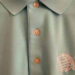 Greg Norman golf polo shirt with embroidered Dell Match Play logo. Ideal for casual wear or a day on the golf course.