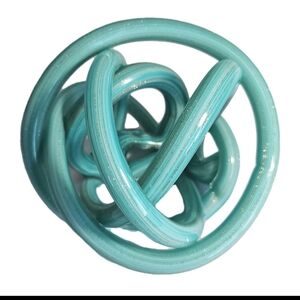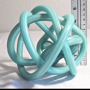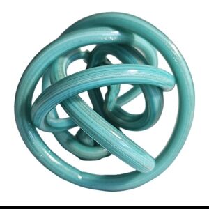 Teal Blue Turquiose Shiny Abstract Art Glass Rope Knot Sculpture Modern Decor