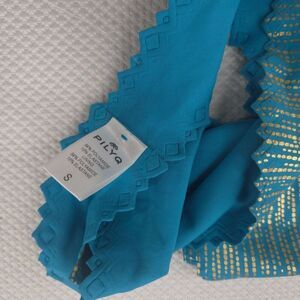Teal Blue Gold Patterned Bikini Bottoms Zigzag Trim PilyQ Womens S NEW