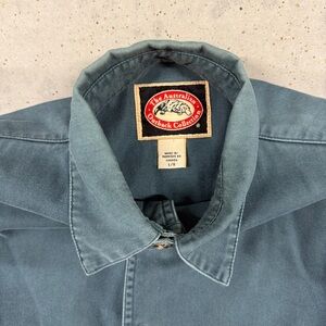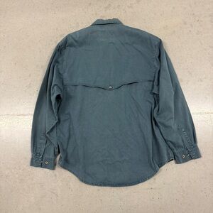 A naturally distressed button-up teal denim style shirt by The Australian Outback Collection.