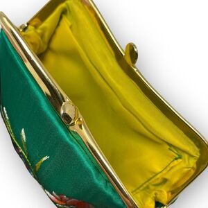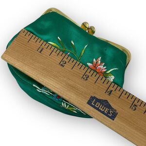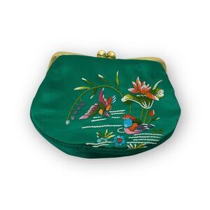 Teal Coin Purse Clasp Bag Floral Bird Embroidered Colorful Spring Summer Retro