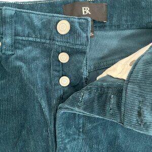 Teal Corduroy pants, women Petite 28W, Button up, Ankle Length