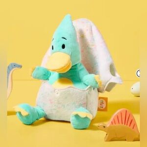 Suitable for ages 1 and above, it can be removed from the egg and then placed back inside for extra fun. This charming plush duck toy comes in a delightful eggshell design. The soft turquoise and yellow colors make it a perfect cuddly companion for kids. Enjoy hours of imaginative play with this cute and colorful toy.