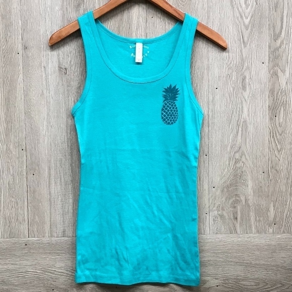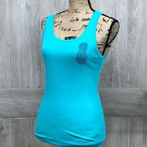 Teal Fitted Tank Top With Green Pineapple BB323
