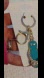 Chic teal flip flop keychain featuring a sparkling rhinestone bow. Perfect accessory for your keys.