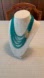 This necklace is a beautiful statement piece! The shade of teal green is really pretty and flattering and with the adjustable clasp it's easy to wear with a variety of necklines.