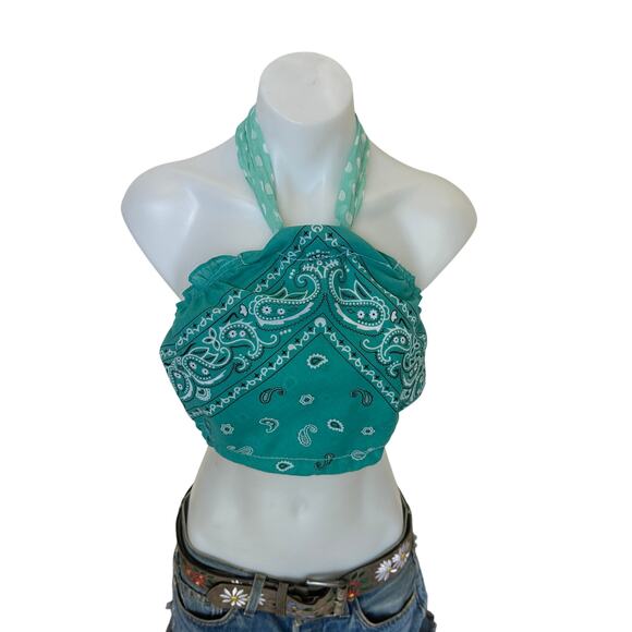 Teal Green Bandana Halter Crop Top One Size Festival Western Handcrafted Unique NEW