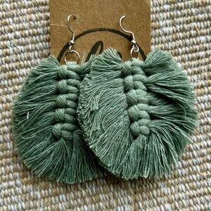 Teal Green Bohemian Texture Textile Earrings FLiPSiDE Threads