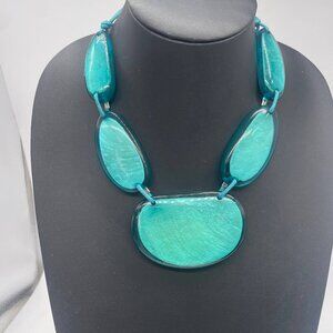 Teal Green Lucite/Plastic Panel Bib Necklace 18 to 21 Inches Boho Casual Beachy