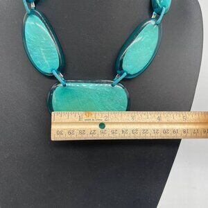 Teal Green Lucite? Panel Bib Necklace 18 to 21 In Boho Casual Beachy