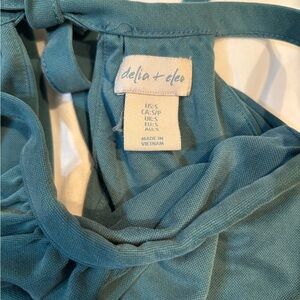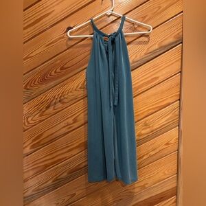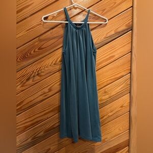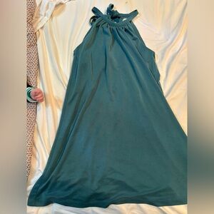 teal halter neck dress. Perfect for any occasion. Model fabric, super comfortable and flattering perfect condition no flaws teal color. Nice breathable, fabric, lightweight perfect for spring and summer also has built-in Cami bra.