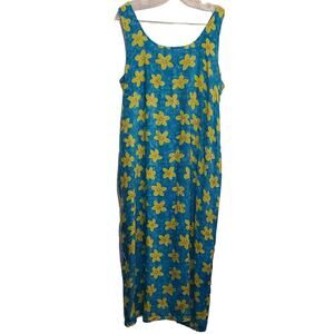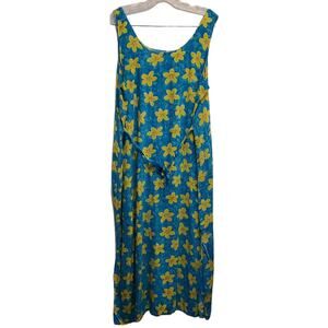 Teal Hawaiian Midi Dress with Yellow Flowers Sleeveless Tank L/XL