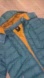 Stylish teal puffer jacket with a cozy hood and orange lining. Features front pockets and a zip closure.Never worn.