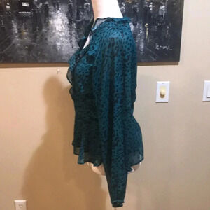 Stylish teal leopard print top perfect for any occasion. Lightweight and comfortable, this top adds a touch of elegance to your wardrobe. Size Zipper.