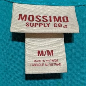 Teal dress with yellow arrow patterns. HAS POCKETS! Yay! Summery but can be dressed up for fall/spring with the right layers.