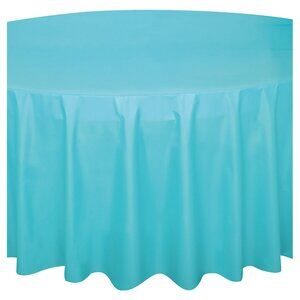 Give a pair of party tables a pop of color with our Teal Plastic Round Tablecloths. Measuring 84 inches, these round tablecloths are sure to come in handy at your birthday party, summer party, or other special event. You won’t have to worry about spills or crumbs – these tablecloths are water-resistant! Plus, you can simply throw these disposable tablecloths away at the end of your event, sure to make cleanup quick and easy. Find more ways to brighten up your bash by shopping the rest of our affordable teal party tableware.