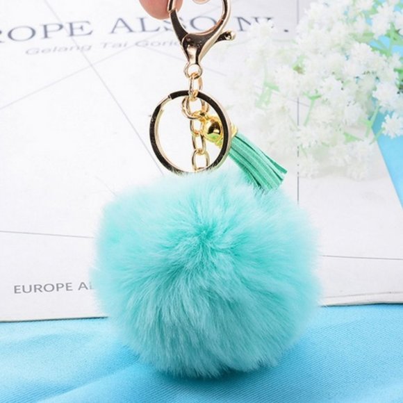 ❤️ Teal Rabbit Fur, Car Mirror, Purse or Key Chain
