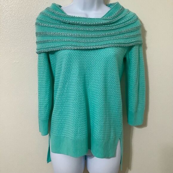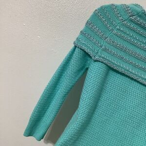 Teal Retro Wintercore Cabincore Holiday Feminine Winter Sparkly Knit Sweater XS