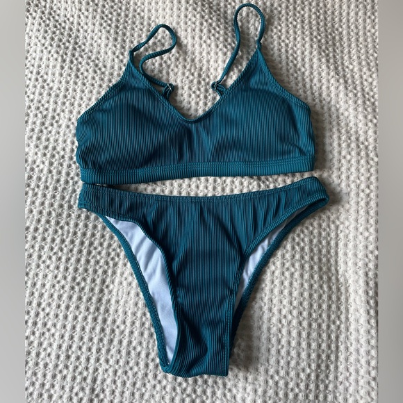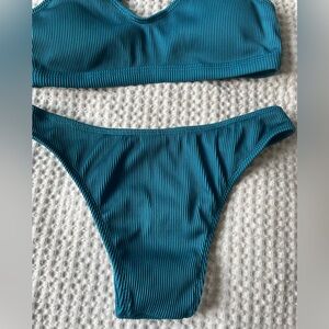 Teal Ribbed Bikini Set