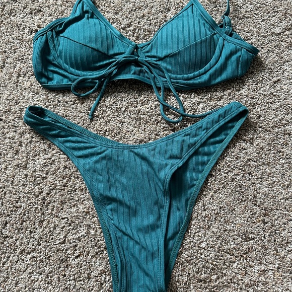 Teal Ribbed Bikini Set
