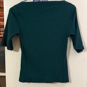 Stylish teal ribbed knit top with half sleeves and wide neck