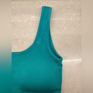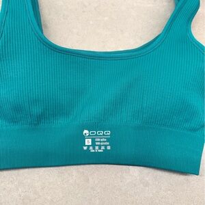 Experience comfort and style with this teal ribbed sports bra. Perfect for everyday wear or workouts.