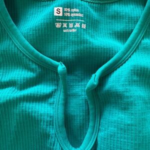 Stylish teal ribbed workout set. Includes a sleeveless top and shorts.