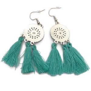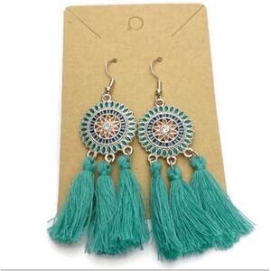 Teal Round Tassel Drop Earrings