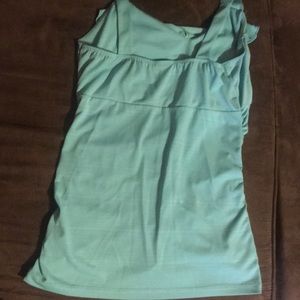 Teal Ruched Front Tank with ruffle front detail and one inch straps. Size Small