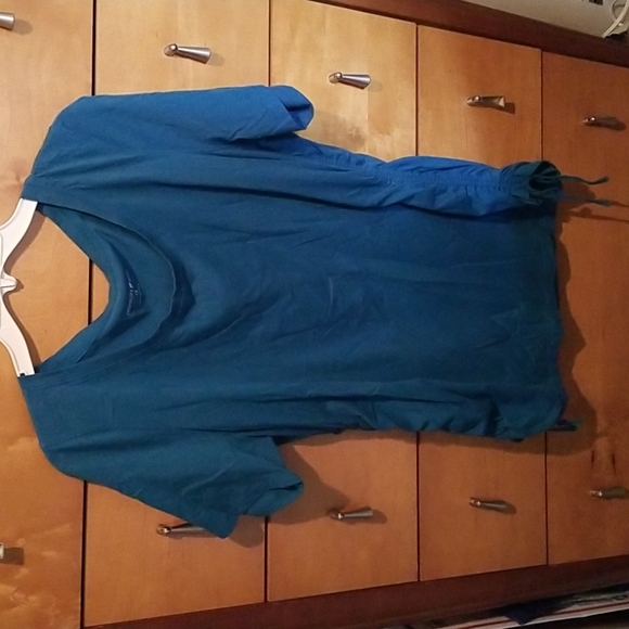 Cute, teal, ruched sides with ties tee. 21" pit to pit, 29" long. EUC.