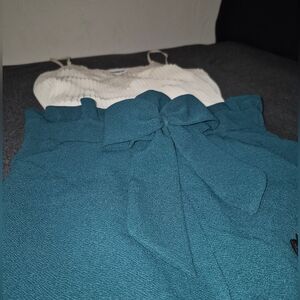 Teal dress pants. Ruffle waist line w/ adorable bow detail.