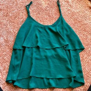 Spaghetti straps, adjustable. Teal color. Loose fitting, flow-fit. Ruffled layers. Gently used, like new!
