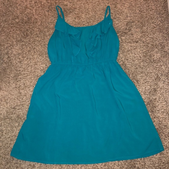 Teal summer dress with a ruffle detail on the top portion. Worn once, most of its life in a closet.