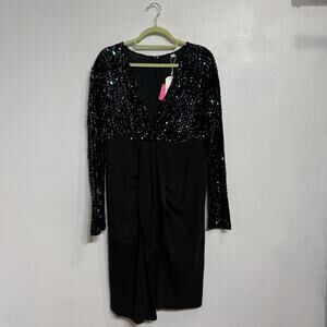 Teal Sequin Plunging V-Neck Midi Dress Sz M NWT