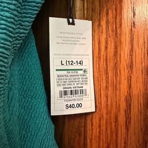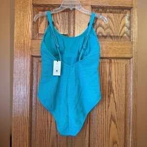 NWT Stylish teal one-piece swimsuit. Features adjustable straps. SIZE 12/14