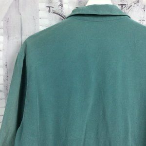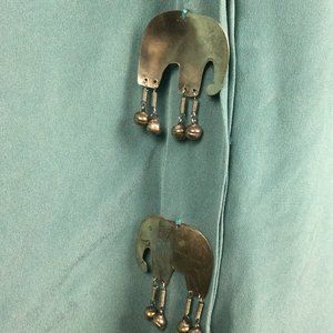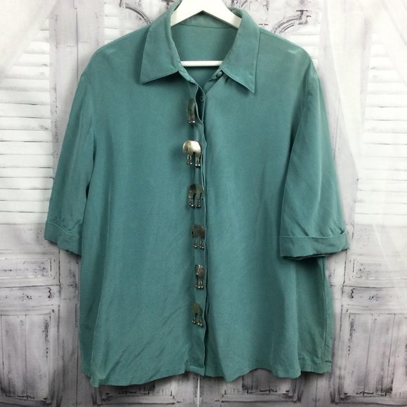 There's no tags so I have no idea where it came from. The fabric feels like silk to me, appears to be 1/2 length sleeves, button down casual top with hidden buttons. The front has silver elephants that looks like real silver but unmarked. The feet have small bells dangling off them. You could remove and repurpose them as jewelry I'm sure. They do tend to make noise when moved. Good used condition. Please see photos.