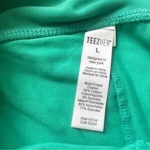 Stylish teal skort featuring colorful eyelets. Also made with mostly cotton which is a great find for material conscious buyers! 💚