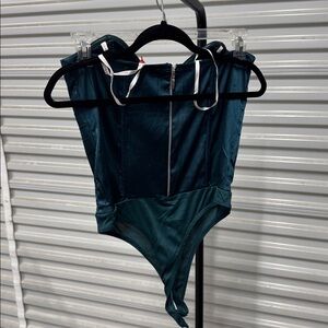 Chic teal sleeveless bodysuit with a stylish design. Smooth material with zipper in the back. NWOT!