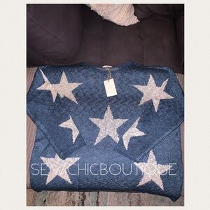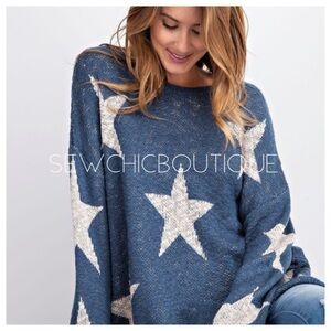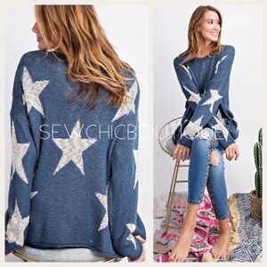 Pretty Teal Blue Well made Star Patterned Knit Pullover Sweater featuring drop shoulders and a shapeless silhouette. I know what you’re saying......”Another Star Print?!?!?”. I know, I know!! But this was ordered 3 months back. It’s also such a pretty color. It’s very good quality & I love it. Hopefully you will too.