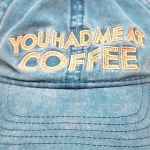 Teal Statement Graphic Ball Cap "You Had Me At Coffee"