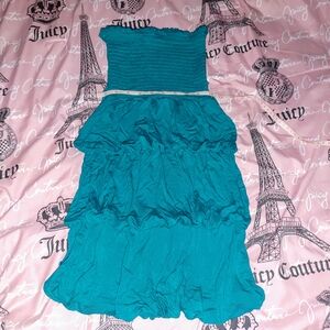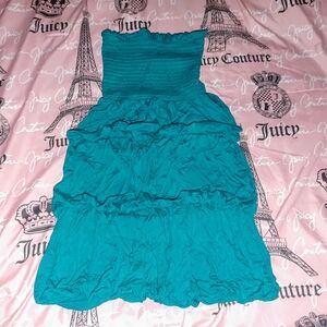 Chic strapless dress . Features a vibrant teal color. Perfect for casual outings. euc