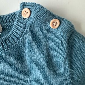 Cozy teal sweater featuring a white fish design. Perfect for casual wear.