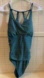 Dive into style with this elegant teal swimsuit. Perfect for a day at the beach or pool. Wide open back with full coverage in the front. High neckline. Extra layer of material around stomach area that is scrunched for a forgiving look. Braided straps for added detail. Worn only a few times!