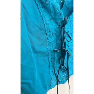 Teal Tie Front Tank Top with Eyelet Details Size Large