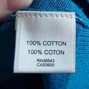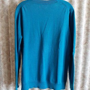 EUC teal colored button front cardigan with hip pockets by Van Heusen Studio. Size is Large. 100% cotton. Machine washable.