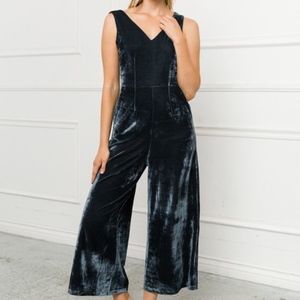 The softest velvet jumpsuit in the prettiest shade of teal. A perfect outfit for the holiday season!