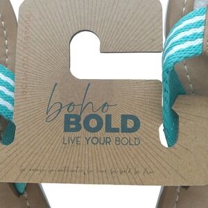 Teal & White Striped Boho Bold Woven Strap ~ Flip Flops ~ Size: 36 EU / 5.5 US