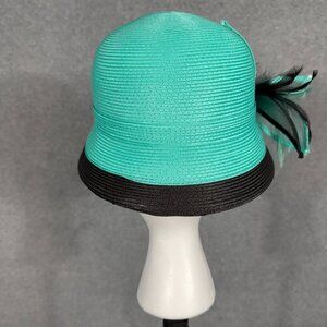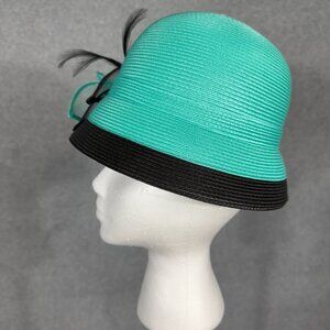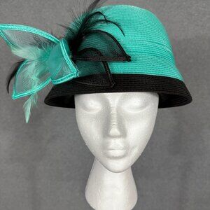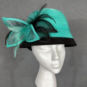 Teal and Black KENTUCKY DERBY HAT or SUNDAY CHURCH SERVICE HAT. Nice feather embellishment. See photos.