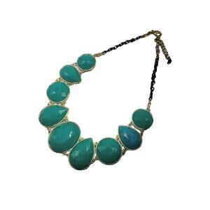 Teal and Gold Tone Chunky Statement Necklace Round and Teardrop Jewelry Glam